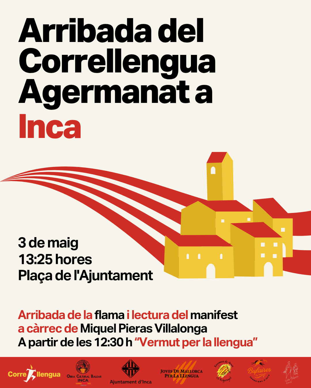 Inca acollirà aquest diumenge 3 de maig l’arribada del Correllengua Agermanat, una cita que combina festa, cultura i reivindicació en defensa de la llengua catalana. L’esdeveniment tindrà lloc a la plaça de l’Ajuntament.