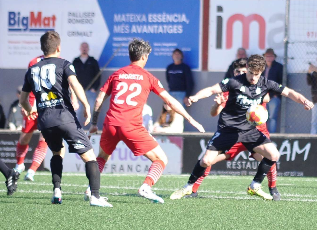 Amb el pas dels minuts, el Constància va anar trobant espais i mostrant personalitat, però li va faltar encert en els metres finals. I quan millor semblaven els visitants, una contra just abans del descans va permetre al Manacor ampliar distàncies amb el 2-0, un gol psicològic que feia mal.